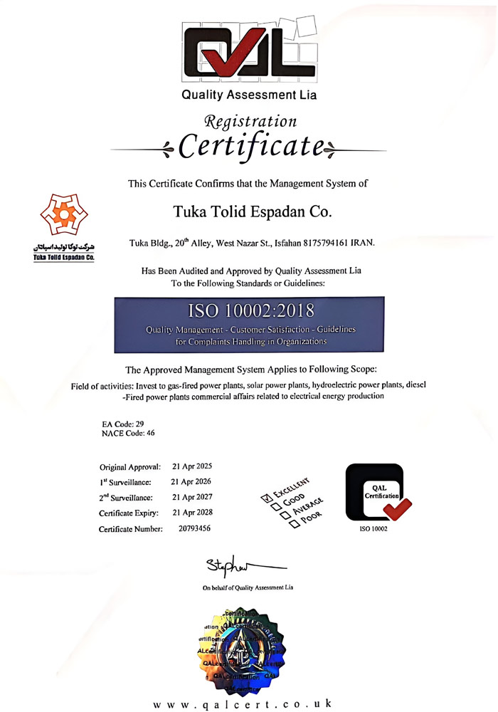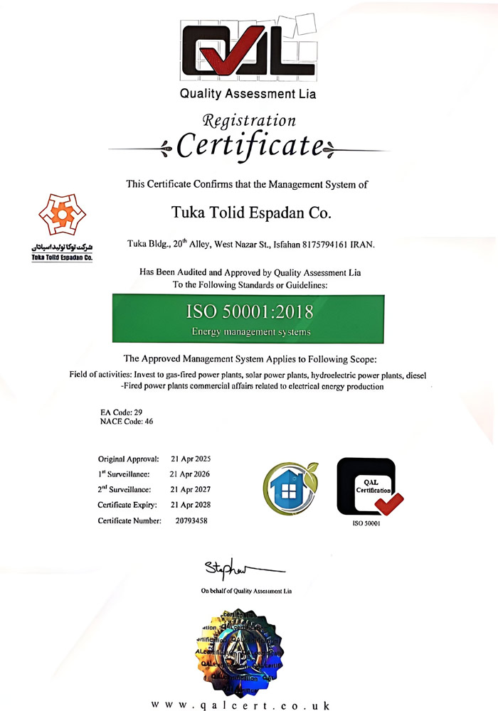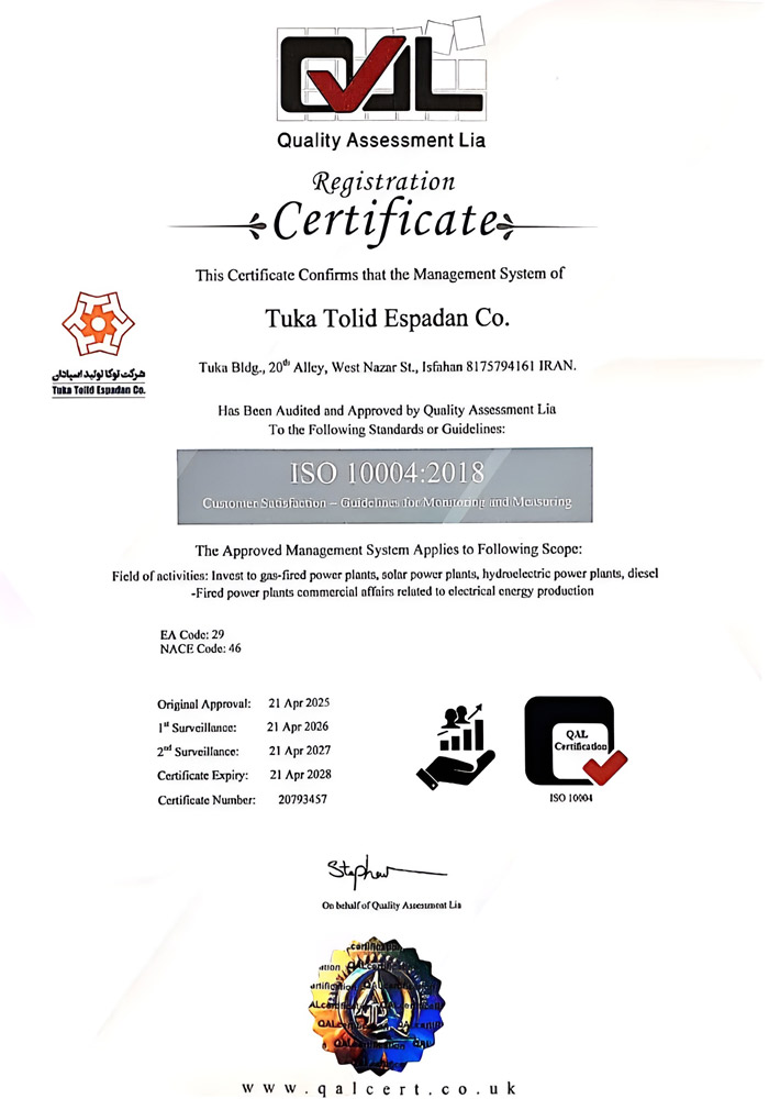 شرکت توکا تولید اسپادان با تکیه بر دانش فنی، نیروهای متخصص و رویکرد توسعه محور، همچنان در مسیر افزایش ظرفیت تولید، بهبود بهرهوری و ارائه خدمات پایدار انرژی گام برمیدارد و خود را متعهد به حمایت از امنیت انرژی و رشد اقتصادی کشور میداند.